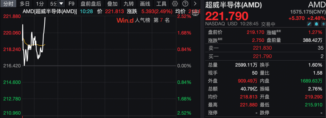 超威半导体(AMD)逆势拉升,最新涨幅为2.48%。据CNBC消息,甲骨文云将于2026年下半年开始部署5万颗AMD AI芯片。