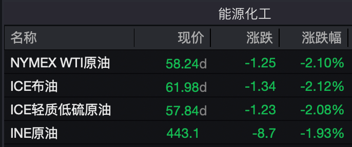 原油继续维持弱势。截至发稿,WTI原油跌超2%。