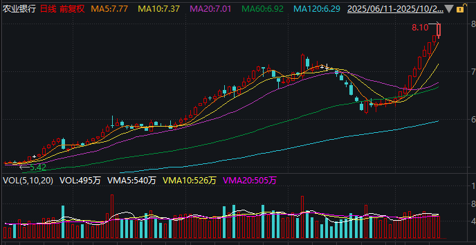 银行板块拉升 农业银行14连阳