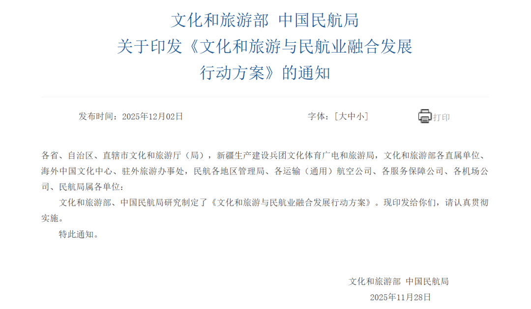 据文化和旅游部网站消息,日前,文化和旅游部、中国民航局联合印发《文化和旅游与民航业融合发展行动方案》(以下简称《行动方案》)。《行动方案》提出,到2027年,旅游出行服务水平显著提高,国际国内旅游航线覆盖更广,融合产品和场景更加丰富多元,文化和旅游与民航业实现更深层次、更大范围、更高质量的融合,形成需求牵引供给、供给创造需求的良性发展格局。