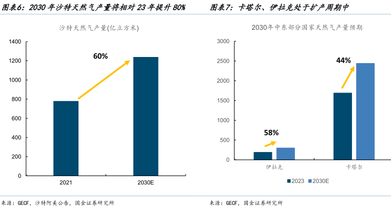 沙特、卡塔尔2030年产量分别预计提升60%、44%,Jafurah、Northfield等大型气田开发中。