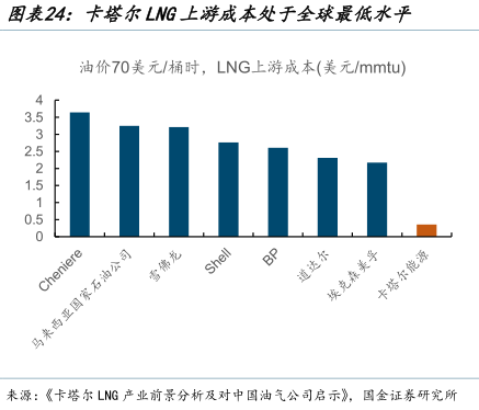 LNG出口为卡塔尔经济命脉,当前卡塔尔正在大幅扩张天然气产量和天然气液化产能。卡塔尔拥有全球最低水平的LNG生产成本,即使面临全球竞争,依然可以在LNG出口贸易里实现显著盈利,扩产势在必行。