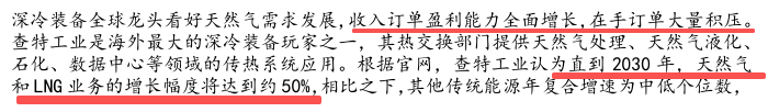 杰瑞股份(EPC、压缩机)、纽威股份(阀门)、万泽股份(燃气轮机叶片)、中泰股份(深冷装置)、福斯达(深冷装置)、应流股份(燃气轮机叶片)、西子洁能(燃机余热锅炉)、东方电气(燃气轮机)等。
