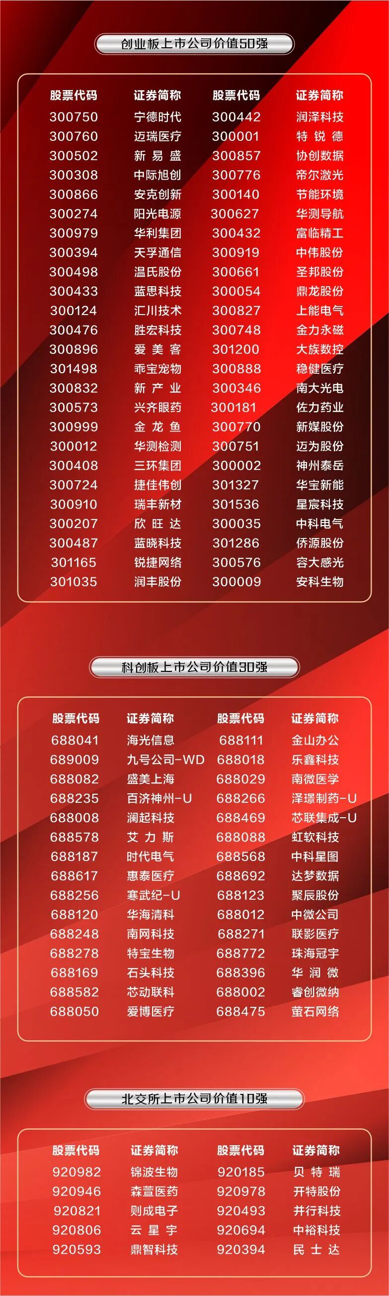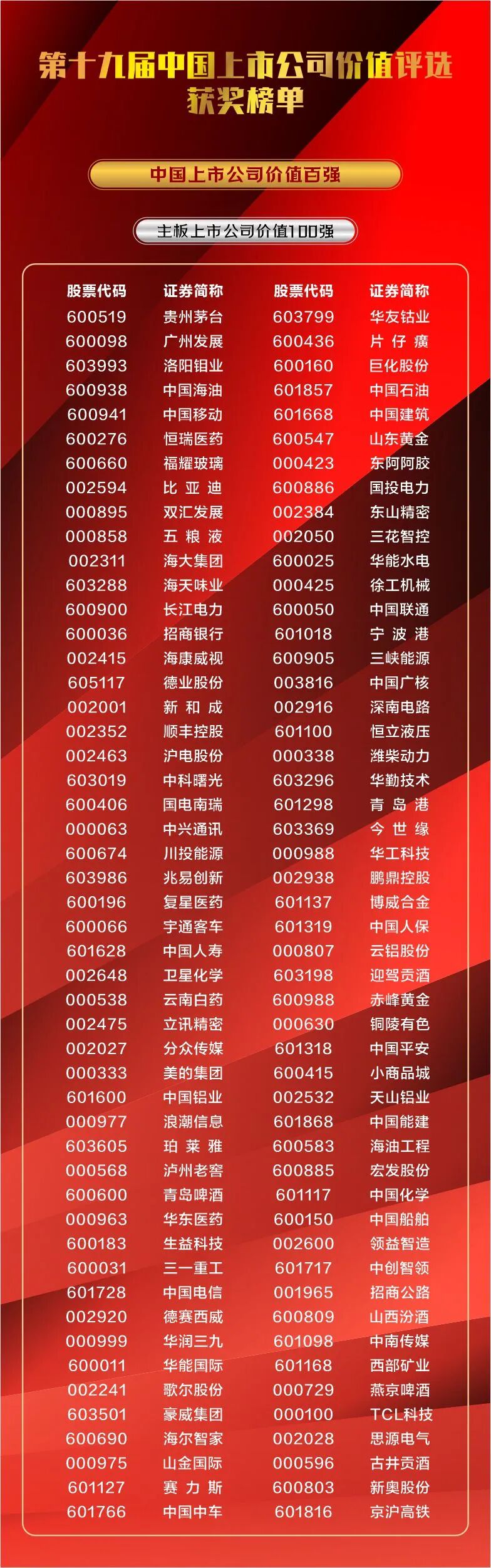 在经过网络投票、合规筛查、专家评审等环节后,第十九届上市公司价值评选结果正式揭晓:
