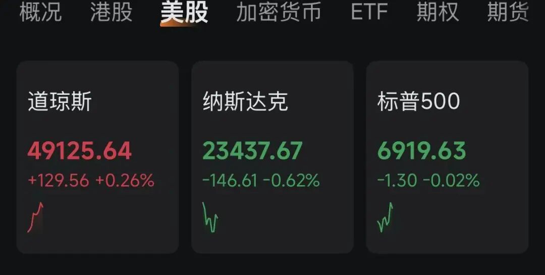 晚间(1月8日),美国三大股指集体下跌,纳指更是在开盘后跳水,截至发稿跌超0.6%,而道指随后翻红。