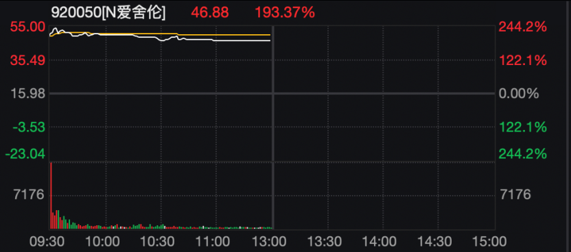 A股市场今天有一只新股上市,为爱舍伦,该股盘中涨幅超过200%。