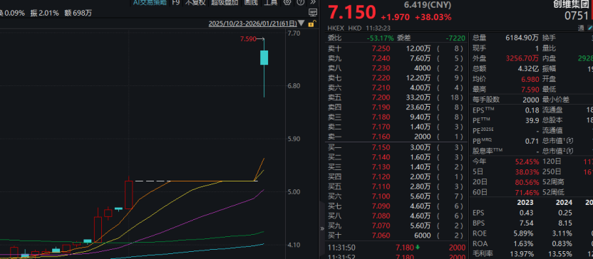 港股市场今天上午整体低位震荡。受到相关信息提振,创维集团一度大涨逾40%。