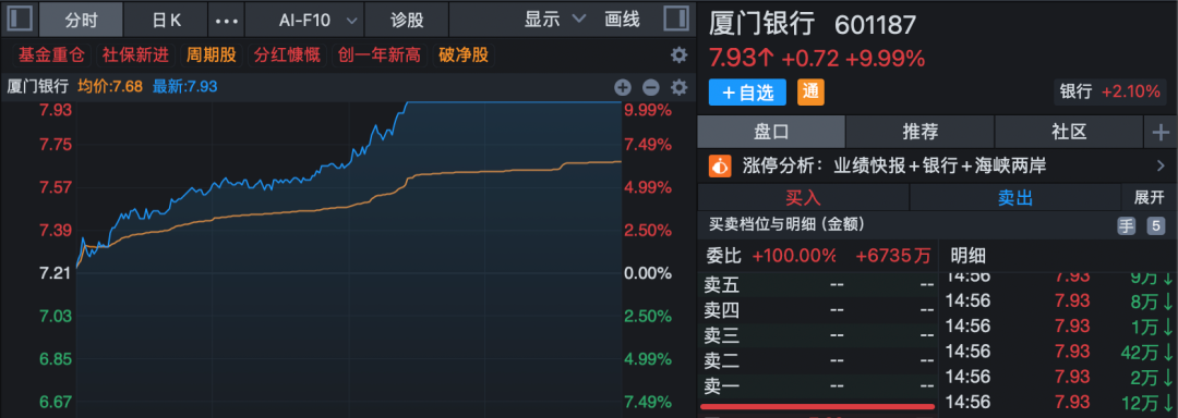 银行股午后放量拉升护盘,板块内所有个股逆市飘红,厦门银行午后罕见放量涨停,重庆银行、上海银行等涨幅居前。