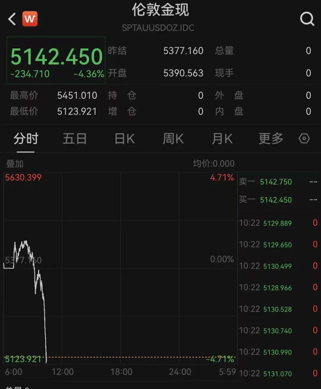 早盘(1月30日)现货黄金跌逾4%、现货白银跌逾5%。截至发稿,现货黄金失守5200美元/盎司。早盘,黄金、白银一度涨超1%