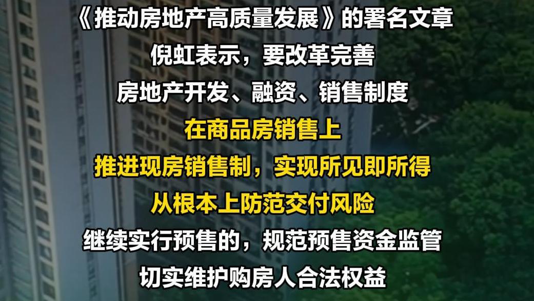 住房和城乡建设部部长倪虹:推进现房销售制 实现所见即所得