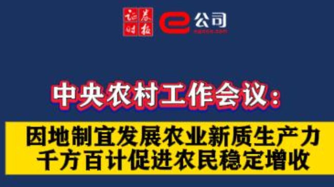 中央农村工作会议:因地制宜发展农业新质生产力千方百计促进农民稳定增收